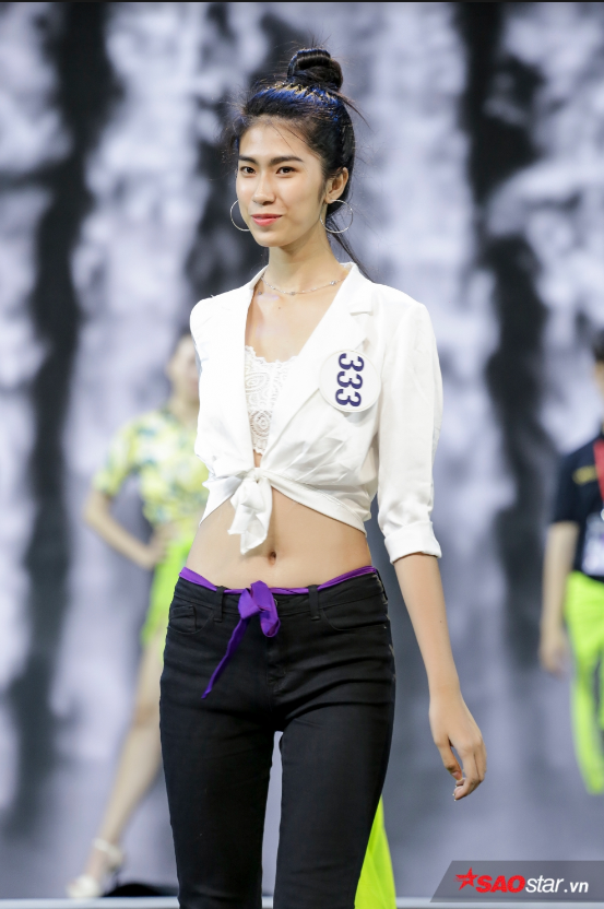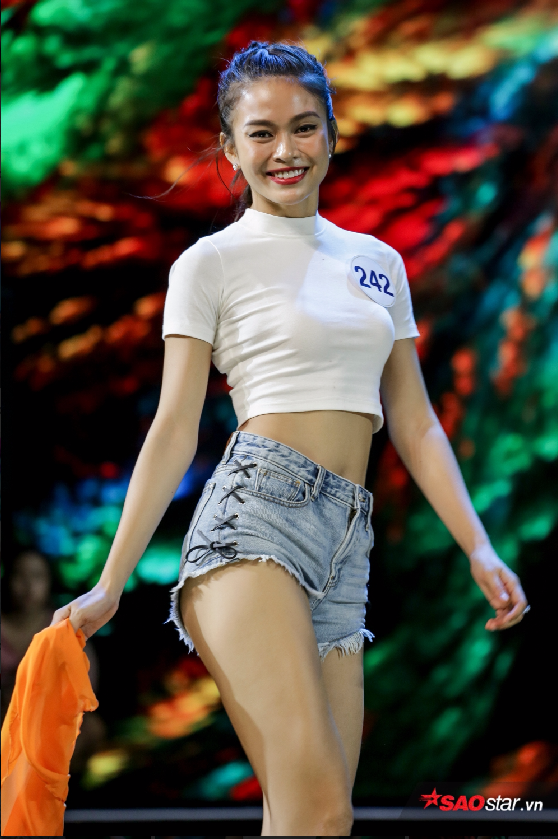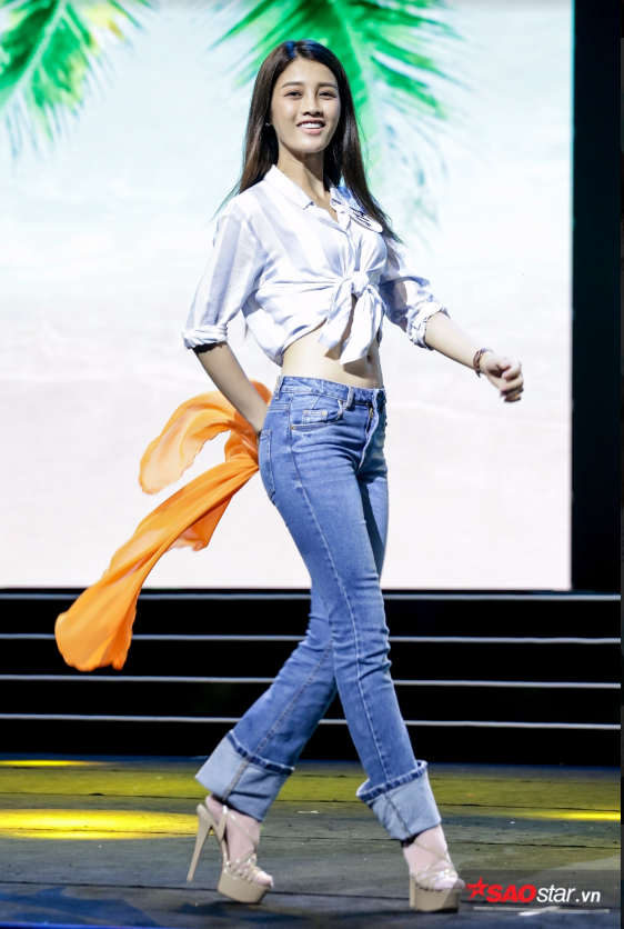 Tuy nhiên, dù đã tiến đến vòng bán kết nhưng không ít thí sinh vẫn để lộ khuyết điểm hình thể. Đơn cử như phần hông, eo còn khá to, thần thái kém tươi tắn của cô gái này!