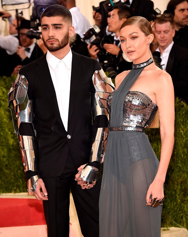 Tại Met Gala 2016, Zayn Malik diện vest đen lịch lãm điển trai nắm chặt tay cô bạn gái chân dài khoe dáng trong kiểu váy xám xuyên thấu cùng chất liệu metallic đính trên thân váy . Nhấn nhá cho set đồ anh bạn trai còn đính hai bên tay kiểu găng tay như những siêu anh hùng trong phim Marvel.