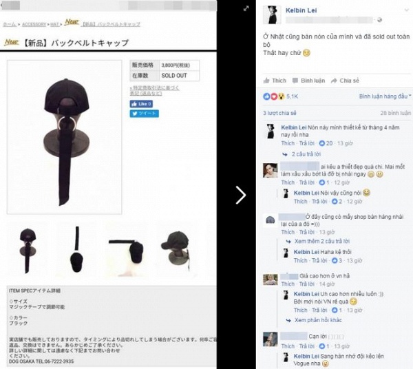 Thiết kế mũ xỏ khuyên của Kelbin Lei bị nhái tại Nhật