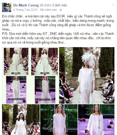 Vào tháng 7/2016, NTK Đỗ Mạnh Cường có trải lòng trên trang cá nhân của anh với nội dung sau: “Em chắc chắn, em mà làm cái này sau Dior, kiểu gì các thánh cũng sẽ ngồi ghép và nói em copy ý tưởng, màu sắc, chất liệu, kiểu dáng mong manh, trong suốt…”. NTK cá tính Đỗ Mạnh Cường mạnh dạn chỉ ra những sự tương đồng giữa các thiết kế của anh với thương hiệu này. Anh tỏ ra khá thoải mái, không quan tâm và thậm chí còn tự hào vì anh tạo ra xu hướng trước. Cụ thể, bộ sưu tập của anh được trình làng vào 14/6/2015 với tên La Vie En Rose , trong khi đó, Dior tung sản phẩm vào ngày 6/7/2016, tức là sau NTK Đỗ Mạnh Cường gần 1 năm.