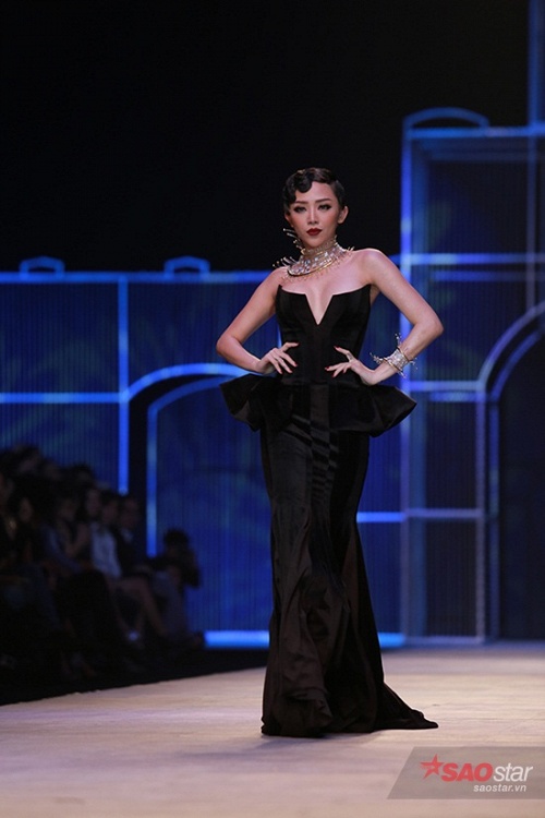 Tóc Tiên thăng hoa trên sàn runway không hề kém cạnh lúc cô biểu diễn trong các sân khấu âm nhạc.