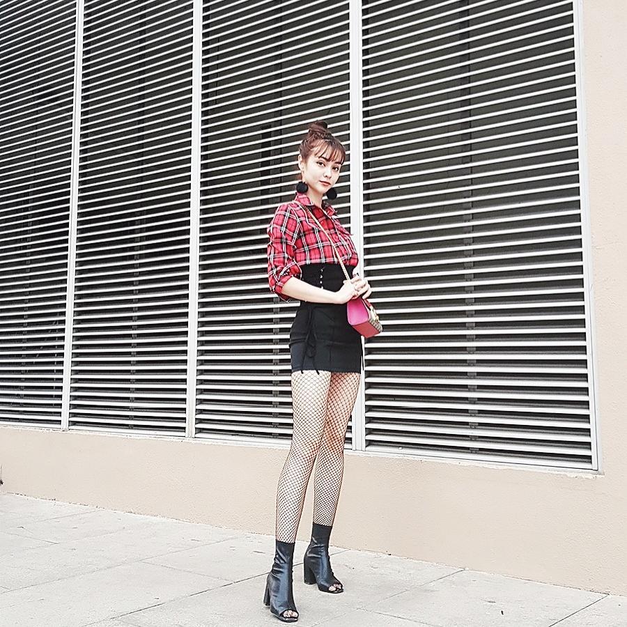 Ca sĩ MLee diện đồ tone đỏ - đen rất hợp với ngày lễ valentine năm nay. Một chút ngọt ngào của tình yêu từ gam màu đỏ cộng hưởng với một chút huyền bí từ sắc đen mới chính là thông điệp mà nàng ca sĩ gửi gắm qua street style của mình.