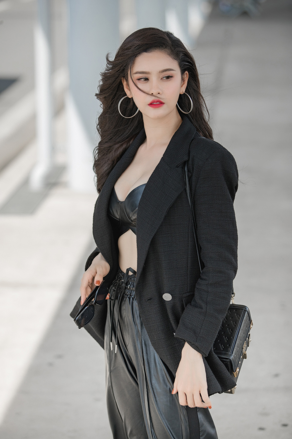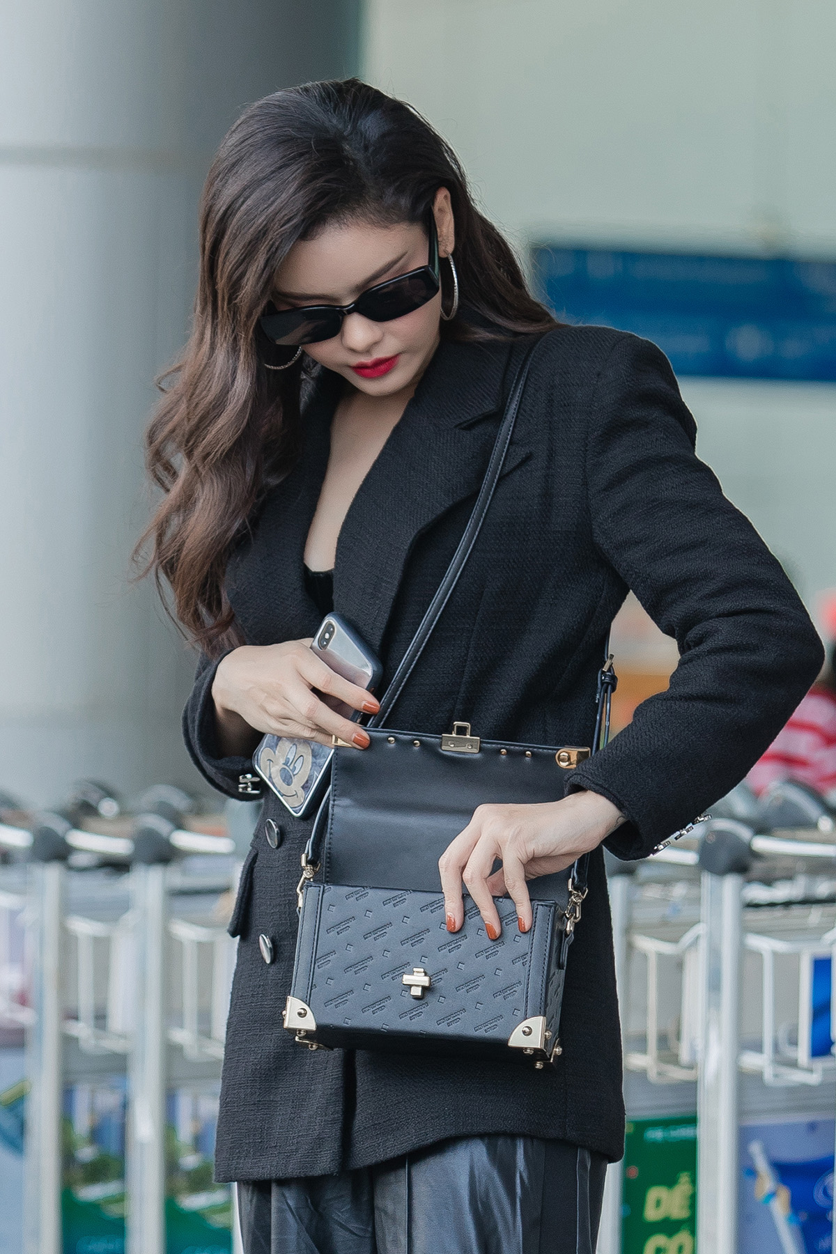 Có mặt tại cảng hàng không quốc tế, Trương Quỳnh Anh tạo ấn tượng mạnh mẽ với phong cách thời trang gợi cảm và hợp mốt. Áo croptop góp phần khoe vòng eo “con kiến” kết hợp cùng mốt quần suông, rộng cùng boots da sành điệu và áokhoác vest giúp nữ ca sĩ khoe làn da trắng mịn và sành điệu chẳng thua kém phong cách thời trang của sao quốc tế nào.
