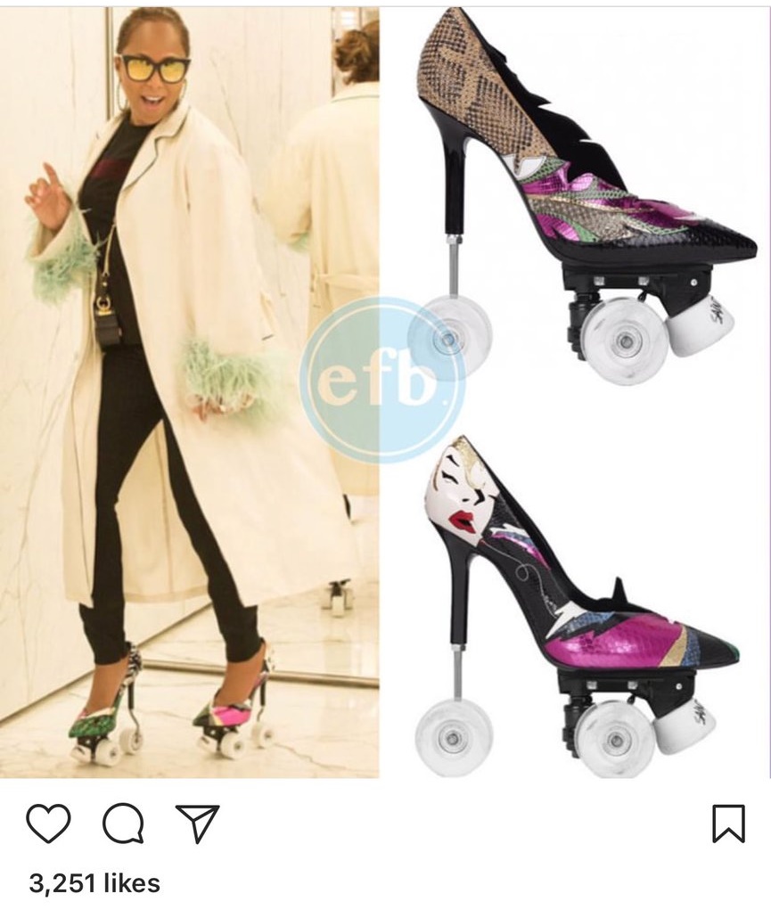 Cận cảnh đôi giày với chất liệu da rắn sang chảnh được gắn bánh xe trượt