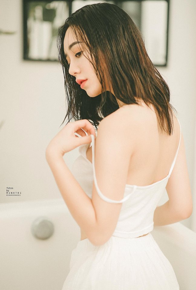 Trong chiếc áo hai dây hững hờ, Quỳnh Kool quyến rũ hết nấc.