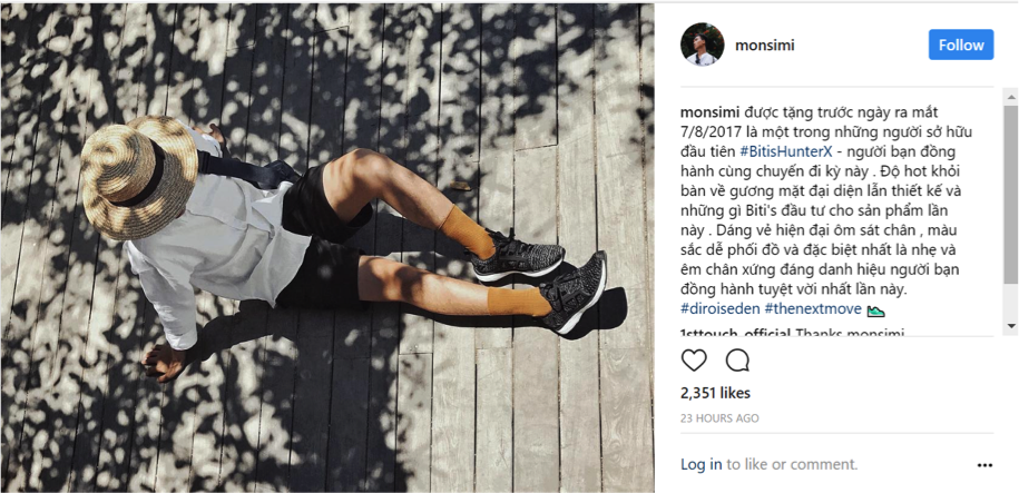 Monsimi - một trong những gương mặt đang rất đình đám trên Instagram cũng “phải lòng” đôi giày Biti’s Hunter X phối màu xám này.