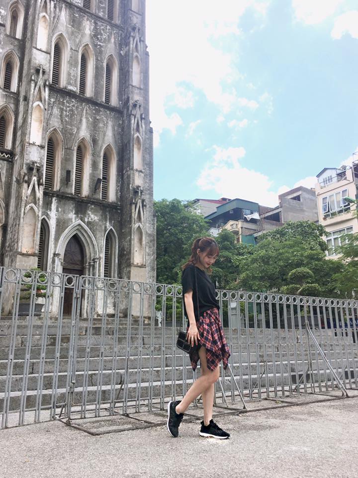 SunHT chọn cho mình phong cách năng động nhưng không kém phần nữ tính khi diện đôi sneaker đang “gây bão”.