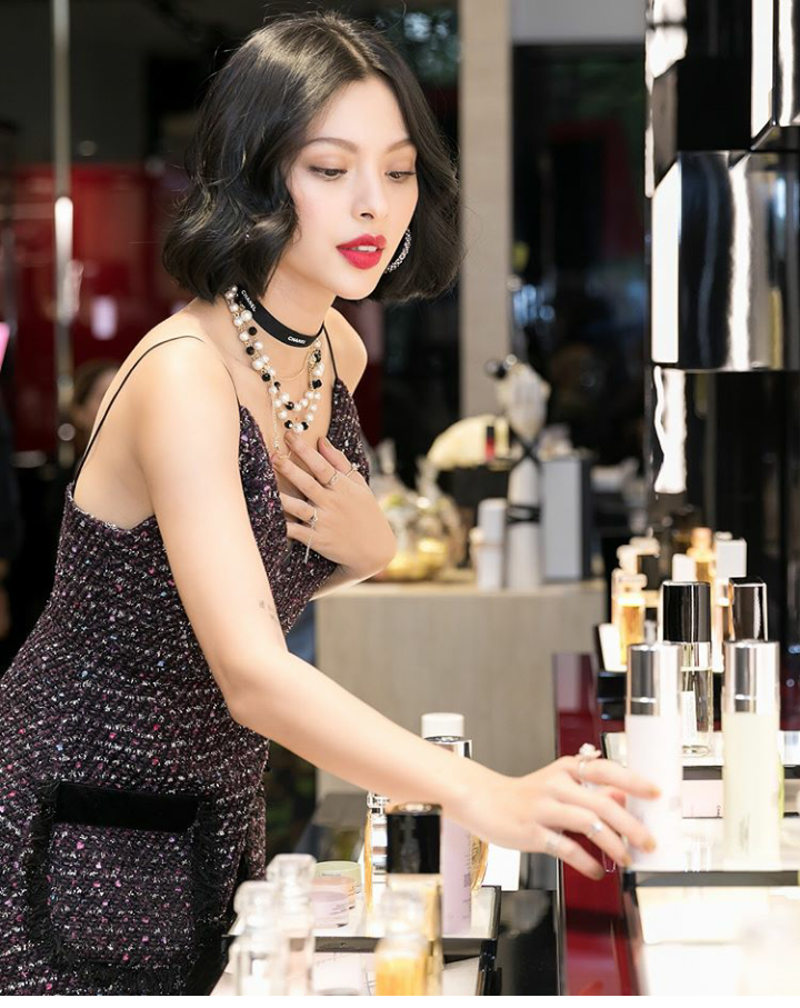 Tham dự 1 sự kiện mới đây, Tú Hảo lại khiến fan mát mặt với hình ảnh quý cô thanh lịch, thời thượng nhưng vẫn pha chút trẻ trung khi diện chiếc đầm 2 dây chất liệu boucle dày dặn, màu sắc sang trọng.