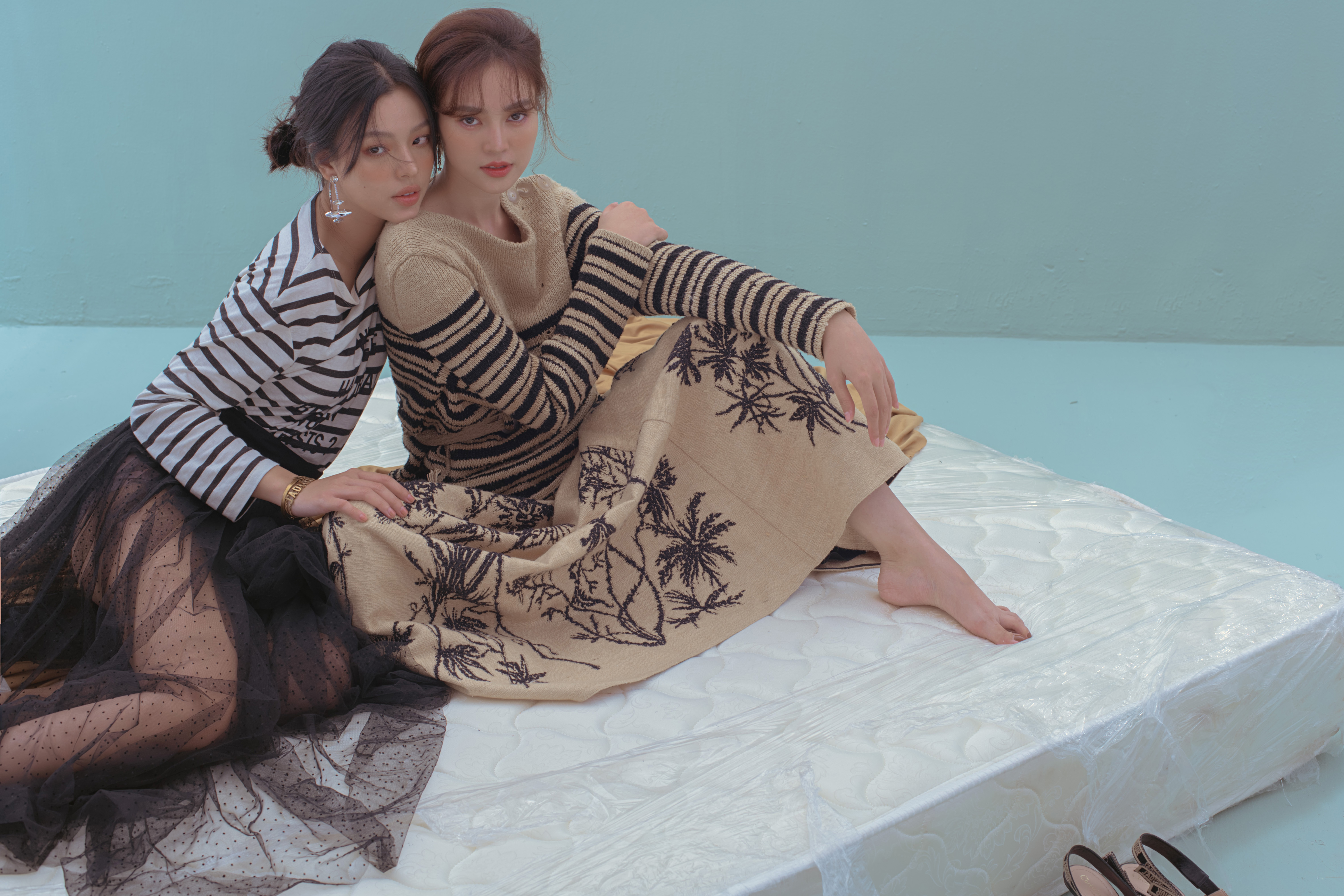 Được biết những bộ cánh mà hai chị em Ninh Dương Lan Ngọc và Tú Hảo diện trong bộ ảnh lần này đều nằm trong bộ sưu tập Xuân - Hè 2020 của thương hiệu thời trang nổi tiếng Dior. Các thiết kế mang đậm hơi thở đồng quê với vảng màu tối giản và họa tiết thiên nhiên. Nhìn vào tổng thể concept lần này, bộ hình nổi bật tone pastel chủ đạo với gam màu xanh dương khá dịu mắt cùng một số sắc độ cân bằng hài hòa bố cục như trắng, đen, beige,…. Những item được phối tạo nên set đồ mang tinh thần khá phóng khoáng nhưng vẫn có sự đồng nhất khi kết hợp.