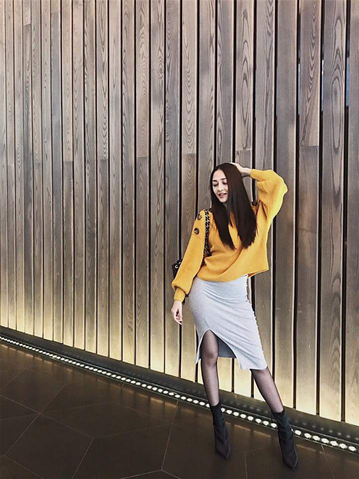 Kiểu váy vai ngang, chân váy xẻ tông màu xám đi kèm kiểu tóc bồng, xoăn sáng giúp cô nàng trở nên thật sự sang chảnh, quyến rũ.