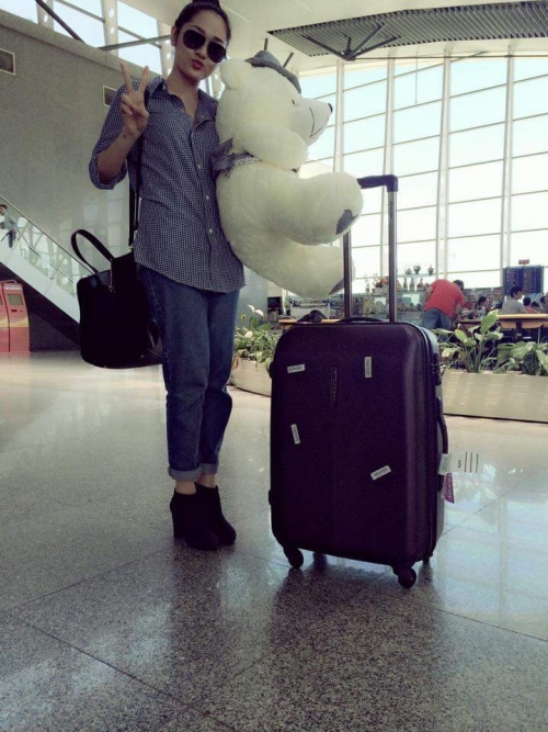Cùng là thời trang sân bay, nhưng phải công nhận, thời điểm này Bảo Anh đẹp hơn rất nhiều. Cô nàng chưng diện outfit quần skinny trắng đi cùng áo khoác bomber hồng đính sticker xinh xắn, phối cùng túi Hermes Berkin đắt giá.