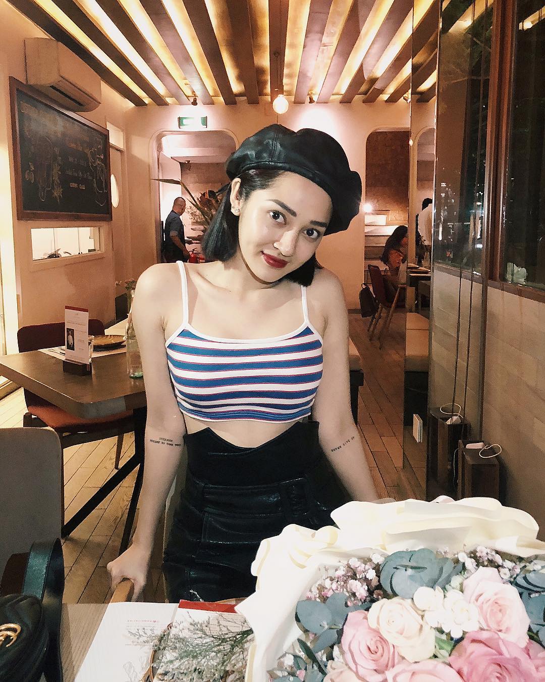 Cô nàng là một trong những sao Việt cập nhật nhanh nhạy các xu hướng thời trang khi chỉ vừa nhen nhóm. Đơn cử như mũ nồi cùng chân váy dạng corset.