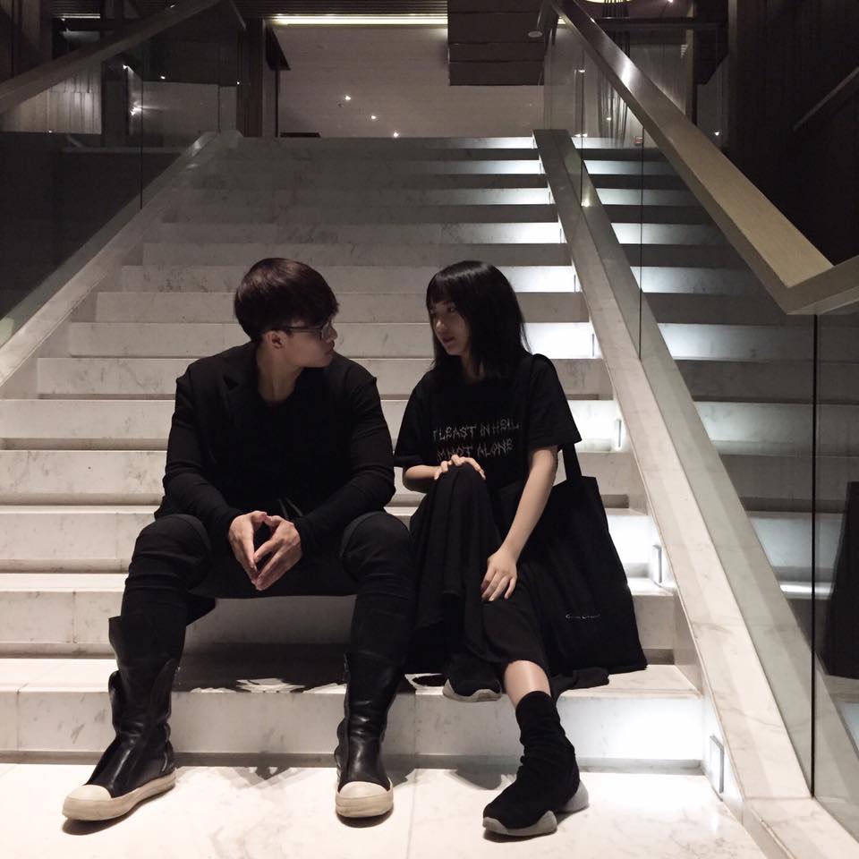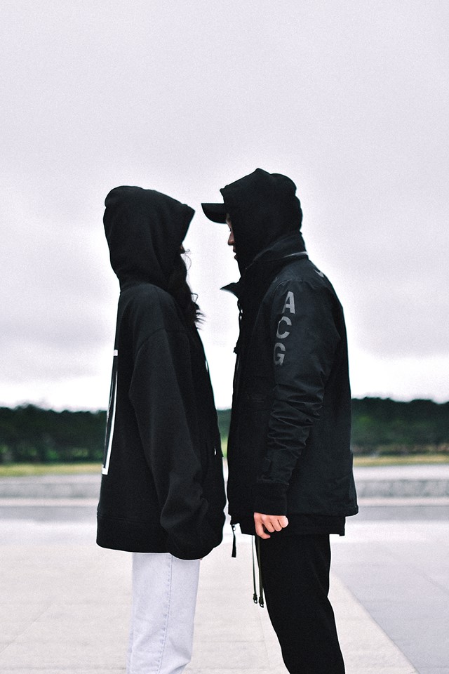 Ai cũng phải bấm “like” cho tấm hình của cặp đôi cực “chất” này. Style all-black được phối hợp chuẩn tới từng item khiến 2 bạn trẻ trông hợp rơ đến lạ. Bonus cho outfit không thể không nhắc tới 2 đôi sneaker hàng khủng.