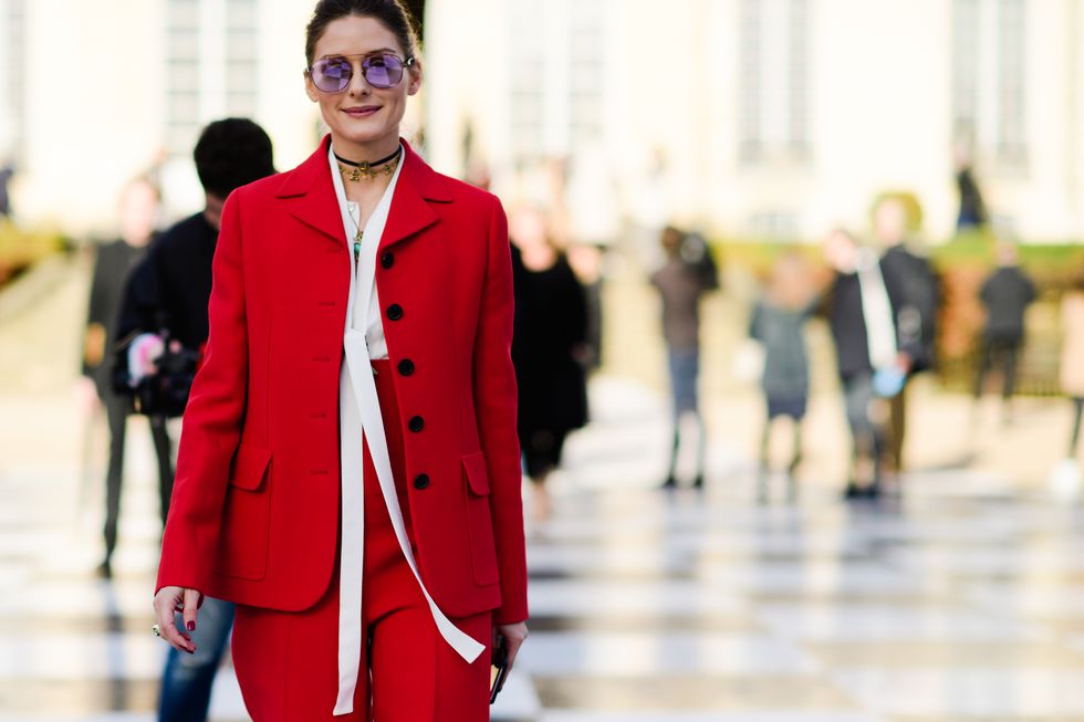 “Ngôi sao của các tuần lễ thời trang” Olivia Palermo với trang phục vest màu đỏ bắt mắt kèm cặp kính mát. Chất hiện đại hòa lẫn với cổ điển tạo nên nét nổi bật.