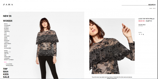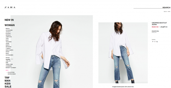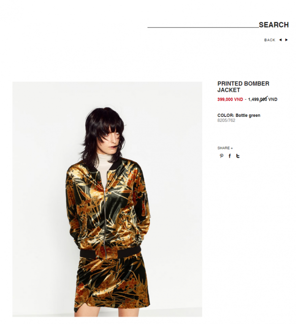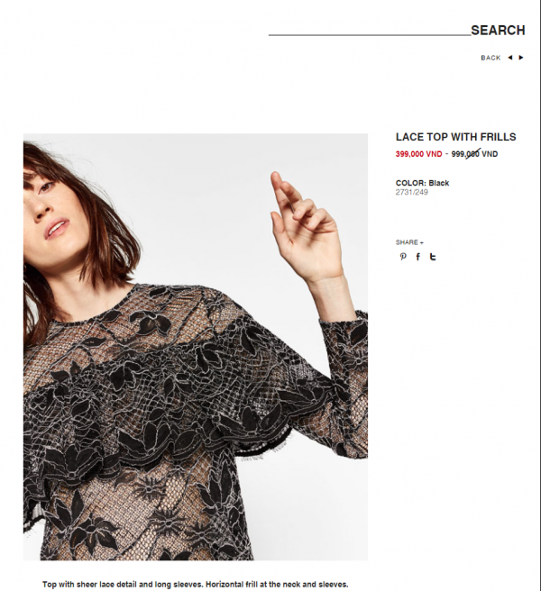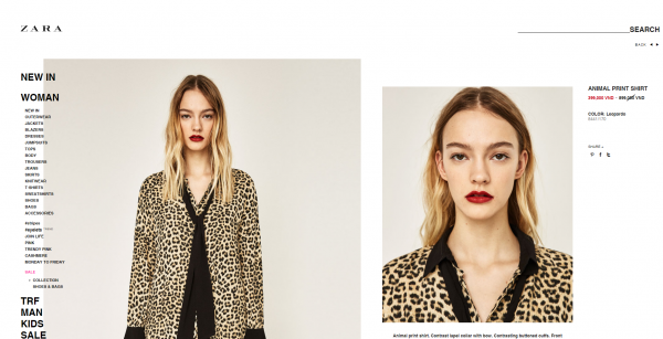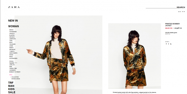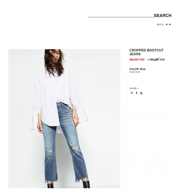Trên website chính thức của thương hiệu Zara, những mẫu sản phẩm sale cũng được niêm yết rất rõ ràng và đầy đủ.