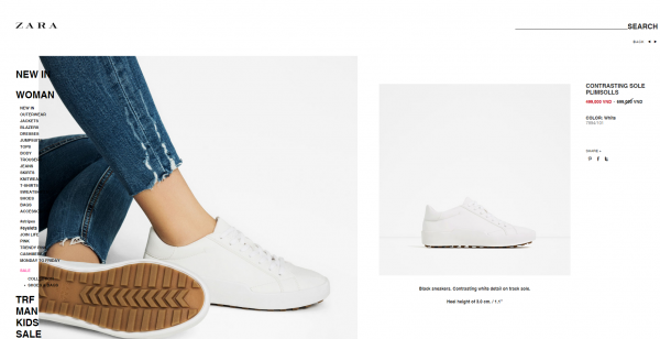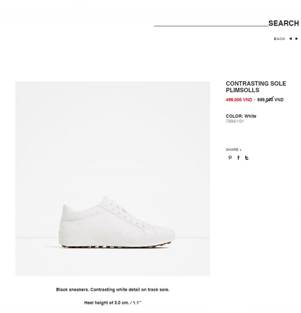 Những mẫu sneaker với giá sale chưa đến 500.000 đồng cũng xuất hiện trên website chính thức của Zara.