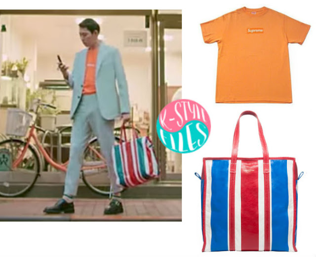 Nhân vật phụ tiếp theo hé mở với set đồ bao gồm áo T-shirt Supreme màu cam cà rốt và chiếc túi Balenciaga như túi đi chợ.