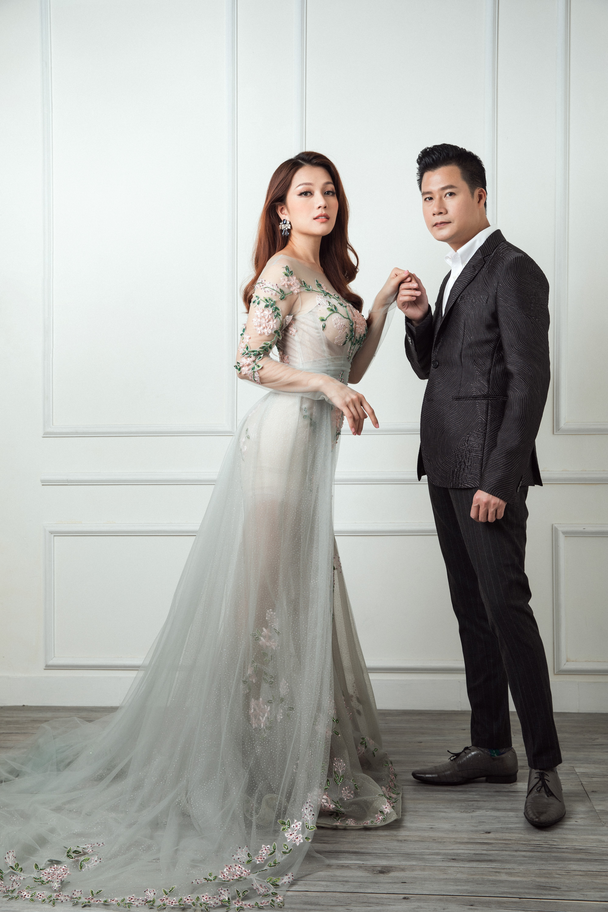 Trong bộ ảnh này, Thái Nhiên Phương cực kỳ ngọt ngào trong những chiếc váy dạ hội bềnh bồng, chất liệu voan xuyên thấu.