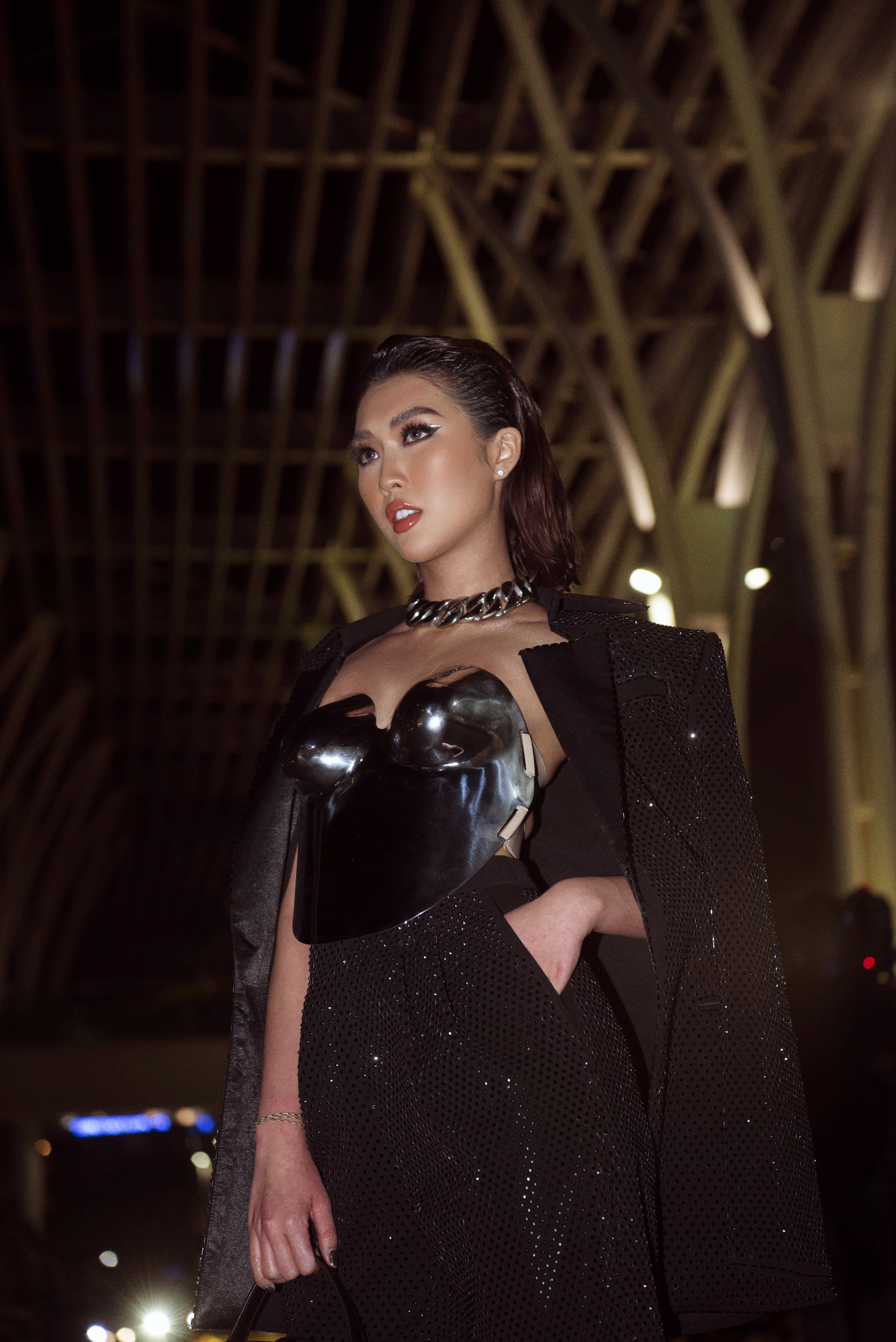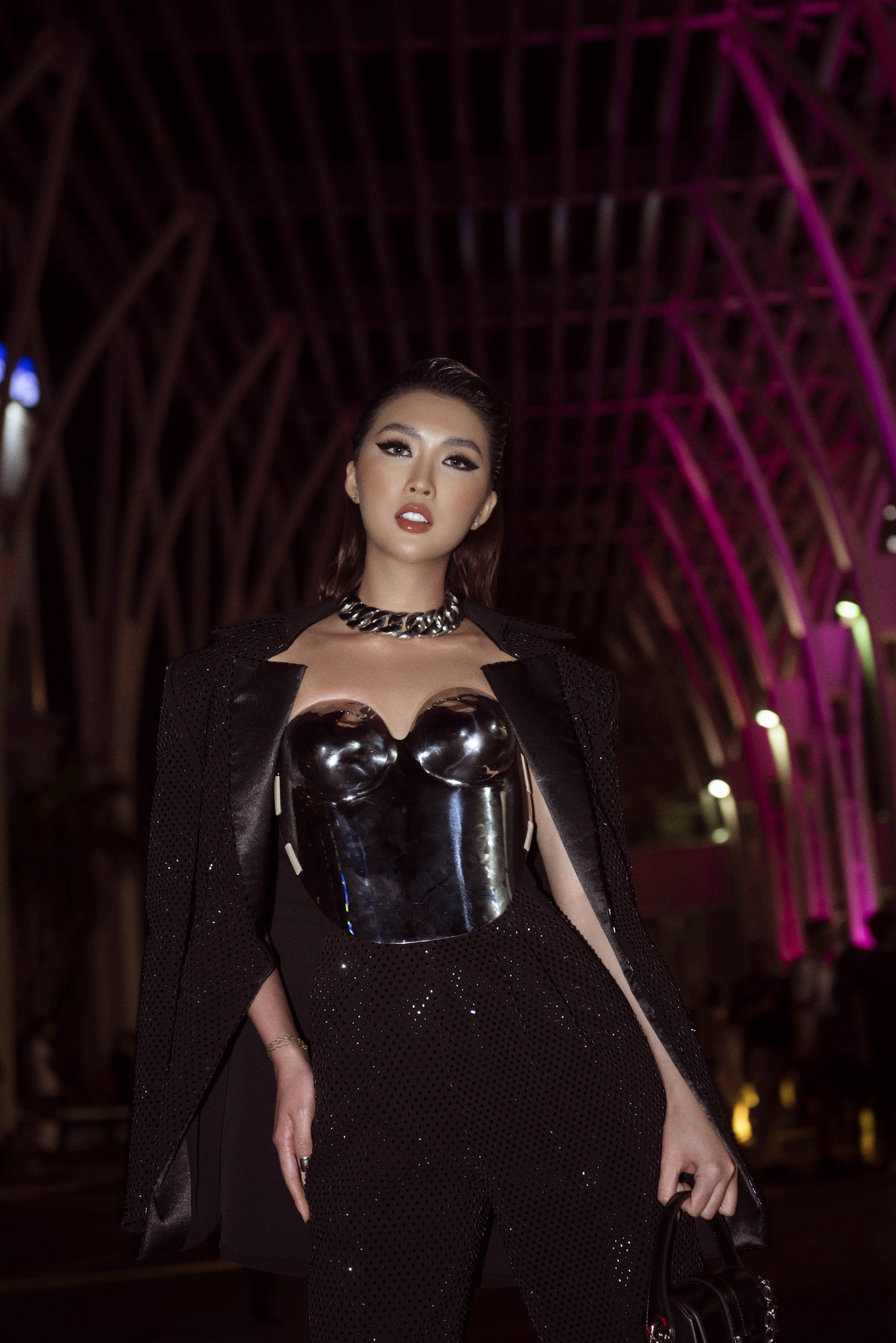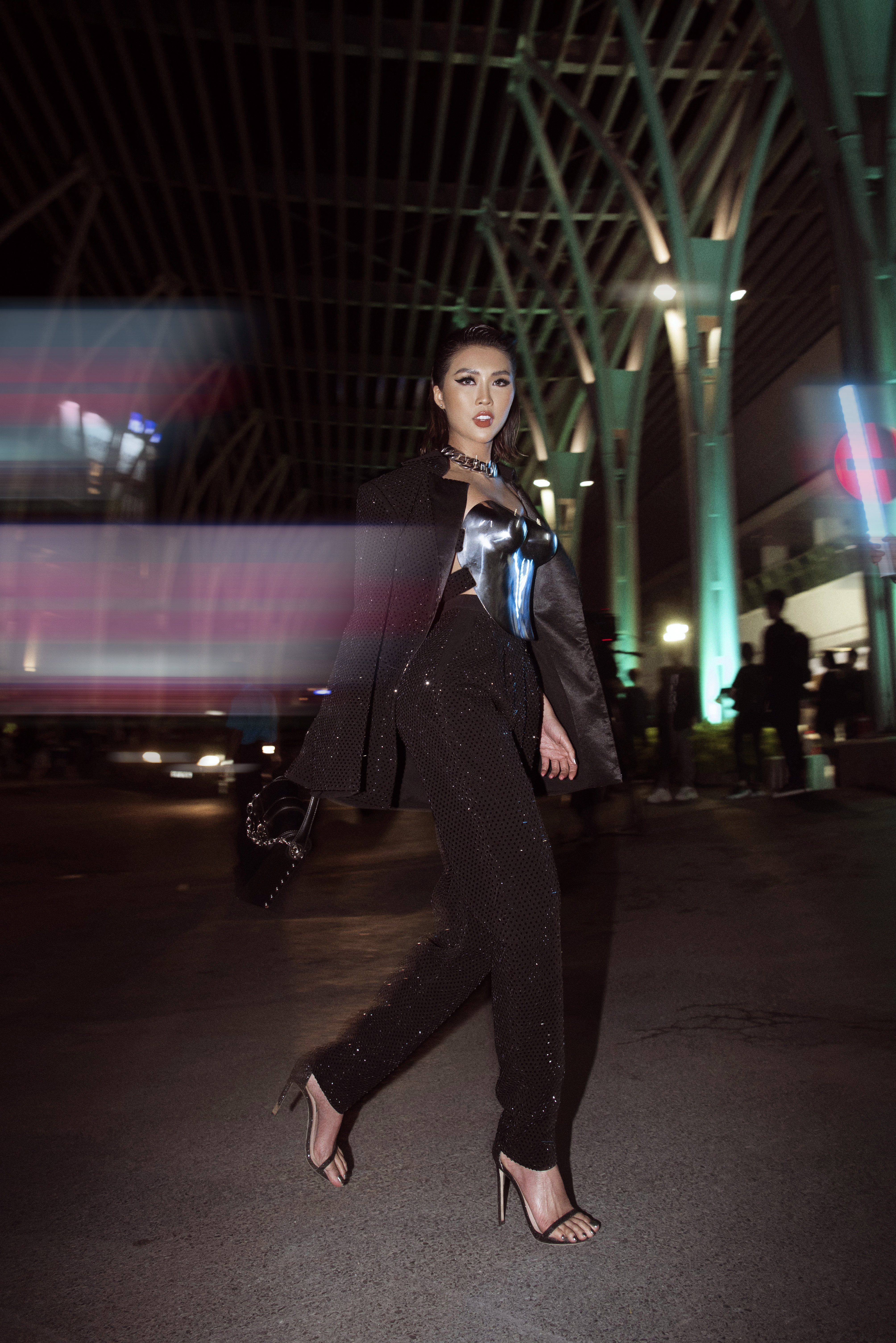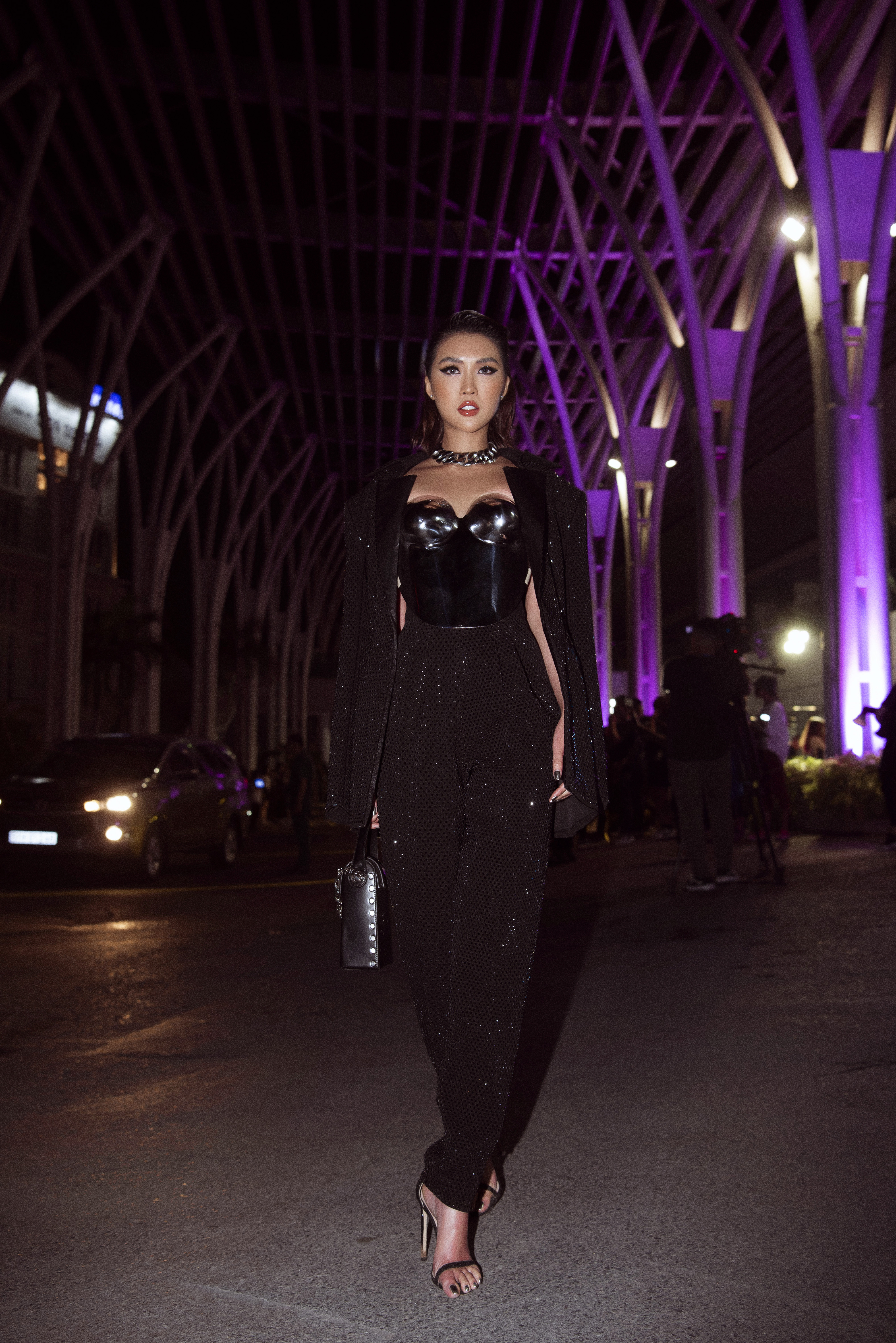 Hoa hậu sắc đẹp Châu Á 2017, Cô gái có nụ cười đẹp nhất Hoa hậu hoàn vũ Việt Nam 2019 - Nguyễn Đặng Tường Linh gây ấn tượng mạnh khi xuất hiện trên thảm đỏ một sự kiện tại Tp Hồ Chí Minh tối 12/1. Tường Linh cột tóc cao, trang điểm cá tính mạnh, cô diện set đồ vest tối màu của NTK Chung Thanh Phong có ánh sáng lấp lánh của kim loại, và đặc biệt điểm nhấn là chiếc corset được đúc bằng kim loại bóng loáng.