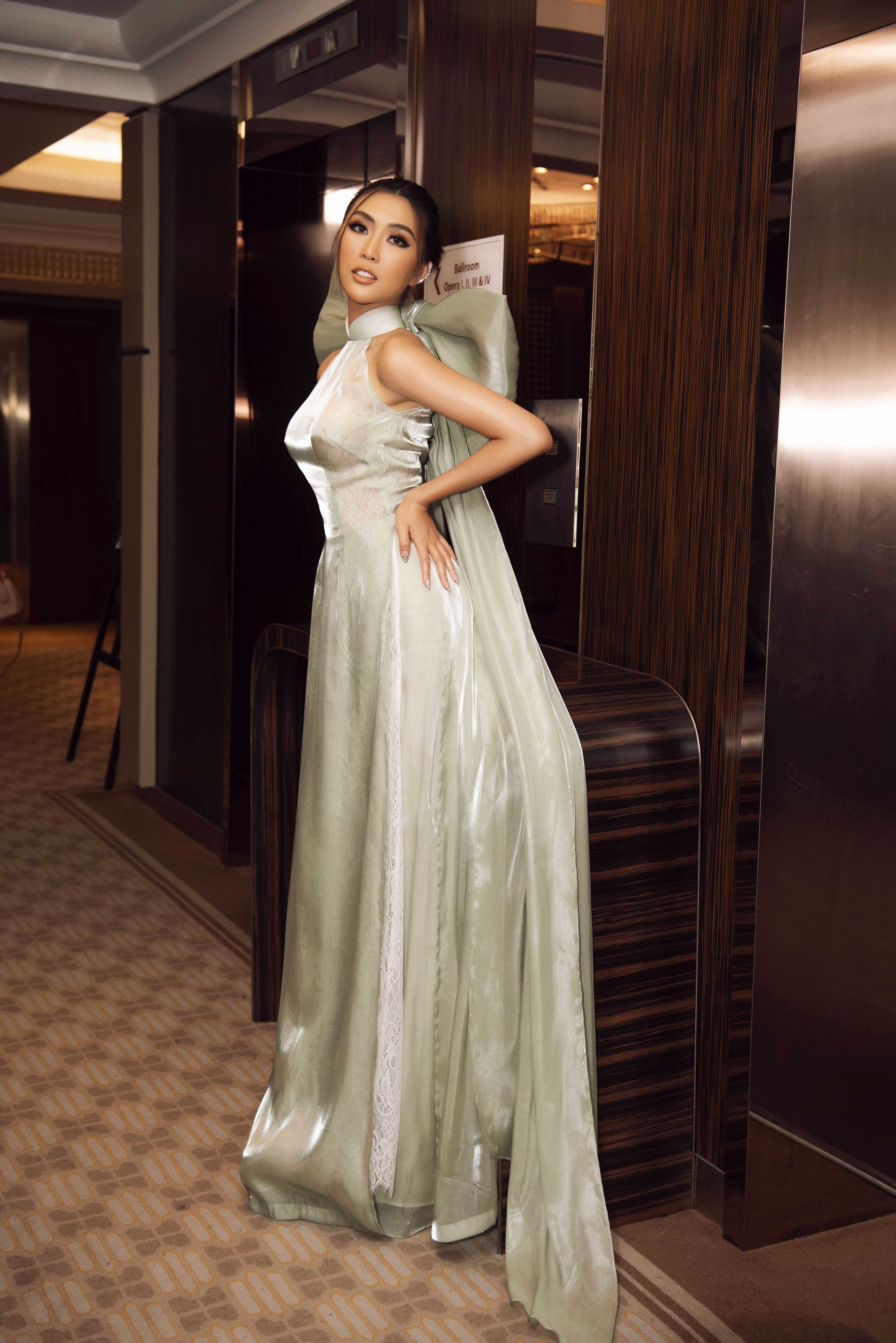 Đặc biệt, hai người đẹp cùng diện những thiết kế áo dài với phần nơ xếp lạ mắt mà duyên dáng, kiêu sa. Hai người đẹp giống như “Thuý Kiều- Thuý Vân” với đồ đôi, nổi bật lộng lẫy tại sự kiện.