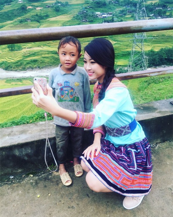 Trước đó, Đỗ Mỹ Linh cũng từng diện váy thổ cẩm xinh xắn hết nấc khi ghi hình cho một chương trình quảng bá du lịch Việt Nam.