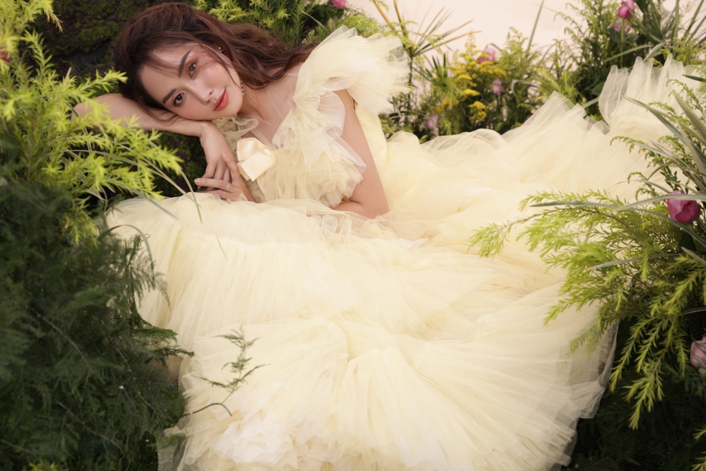 Nữ diễn viên khoe vẻ ngoài nữ tính nhưng không kém phần quyến rũ trong thiết kế voan mỏng, đây được xem là món quà mà Tường Vi dành tặng cho khán giả, những người luôn theo dõi, động viên cô suốt quãng thời gian làm nghệ thuật.