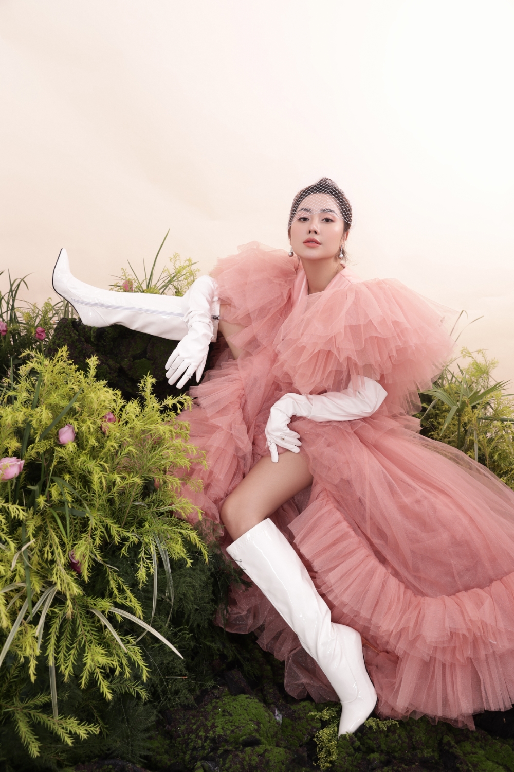 Trong bộ ảnh mới, Tường Vi còn cho thấy sự phá cách trong thời trang khi kết hợp giữa váy công chúa nữ tính cùng đôi boots cao màu trắng tạo nên sự khác biệt. Đồng thời, cô cũng phối trang phục với mũ lưới, gợi nhớ đến hình ảnh những quý cô cổ điển.