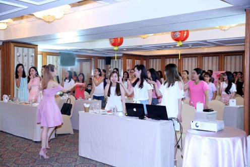 Emmi Hoàng cùng các khách mời tập thể dục cho môi cực thú vị để hâm nóng chương trình.