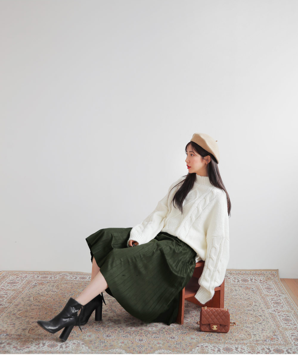 Áo len xoắn thừng có thể diện được đơn chiếc với chân váy dài và boots, đơn giản nhưng vô cùng ấm áp. Tuy vậy, nếu có chiều cao khiêm tốn, bạn cũng nên tiết chế độ dài rộng của áo để đạt hiệu quả tốt nhất.