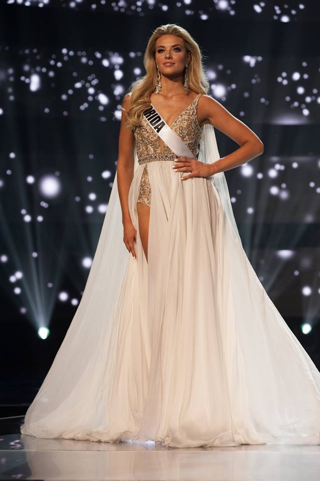 51 cô gái đến từ 51 tiểu Bang của nước Mỹ đã cùng nhau bước qua 3 phần thi: giới thiệu bản thân, áo tắm và trang phục dạ hội. Sau khi trải qua hai phần thi giới thiệu bản thân và áo tắm đầy nóng bỏng, các ứng viên đồng loạt khoe sắc lộng lẫy trong phần thi trang phục dạ hội.