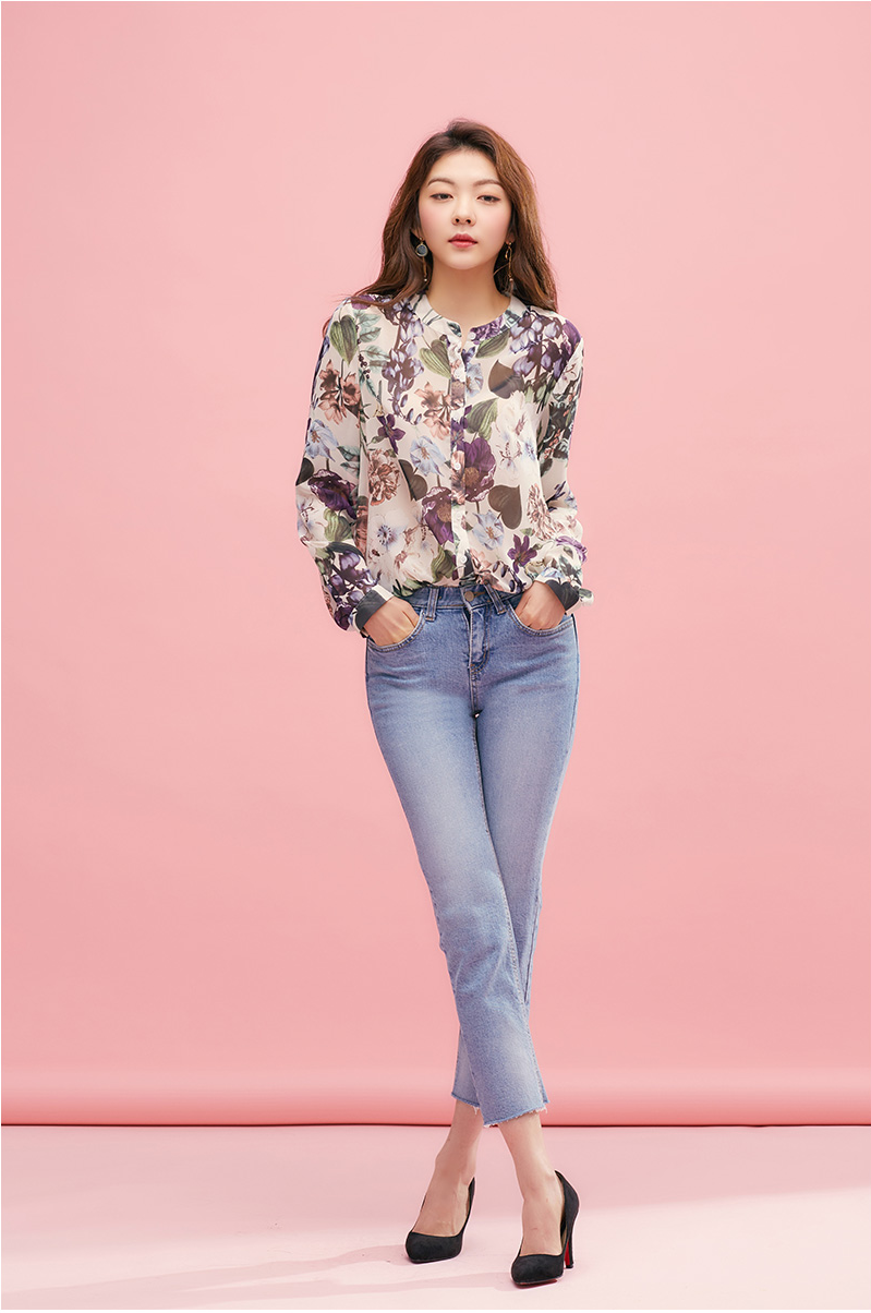 Nếu đã diện đồ họa tiết in hoa, một là diện váy liền không, hai là chỉ sử dụng một áo/quần in hoa trong một set đồ, còn lại là đồ màu trơn. Quần jean đã có sẵn trong tủ đồ của bạn, hãy “gắn bó” nó với sơ mi hoa, không làm mất đi sự nữ tính hề chút nào.