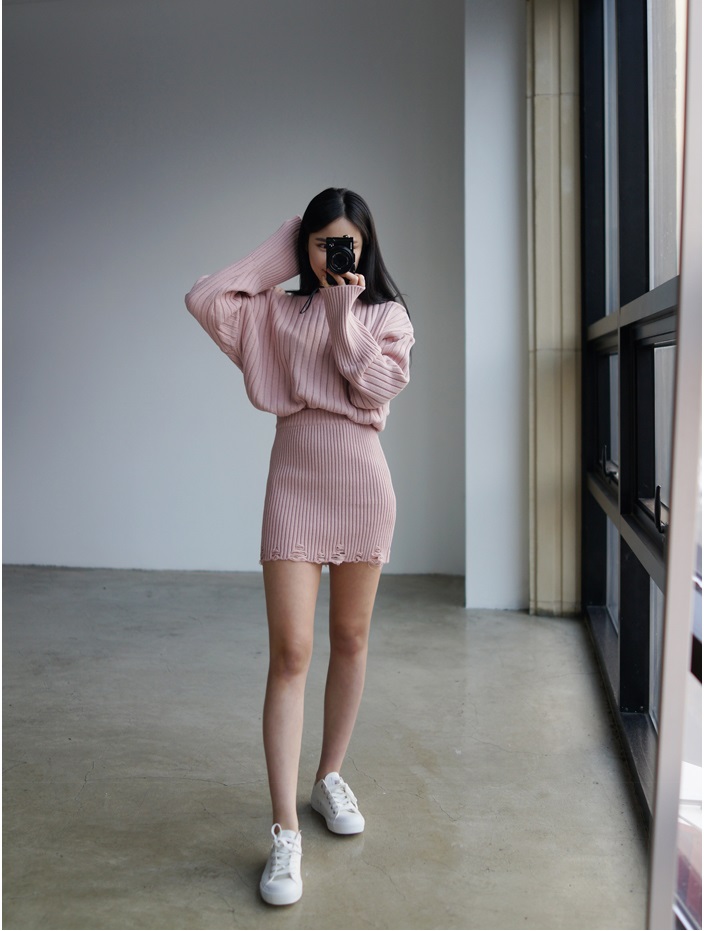 Quen với sự đơn giản, hãy tìm chân váy len đồng điệu với màu áo.