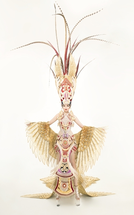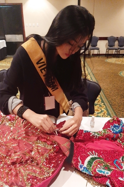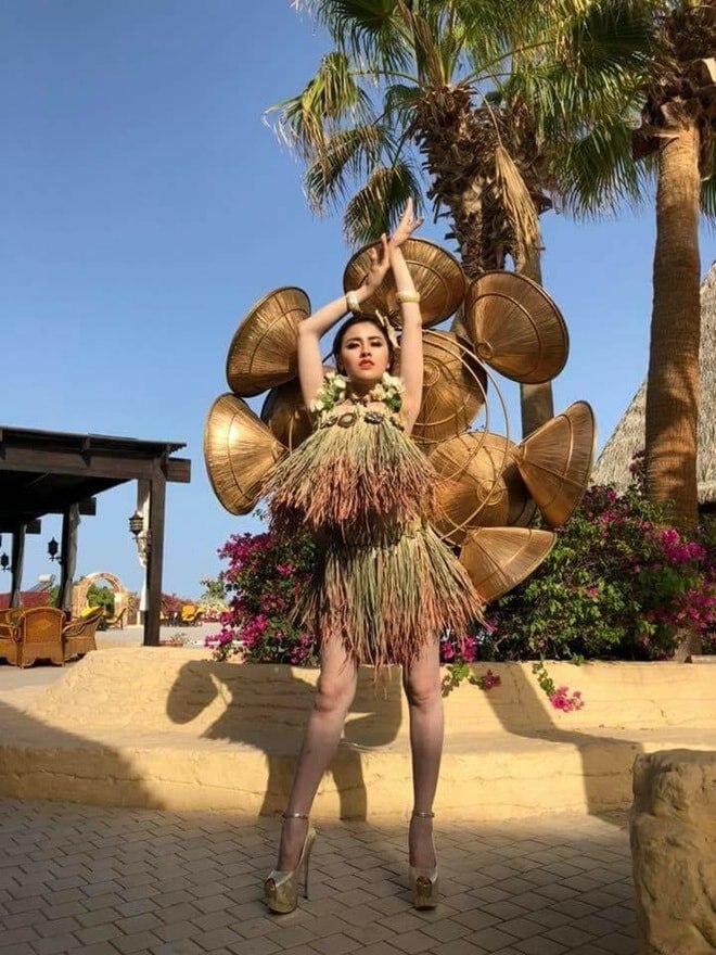 Ngọc Châu trong phần thi trang phục dân tộc. Do phần mũ bị mất nên đã ảnh hưởng không nhỏ đến kết quả, song đại diện Việt cũng đã hoàn thành khá tốt.