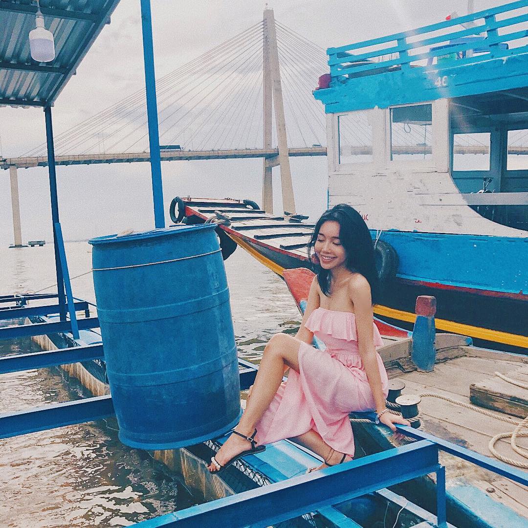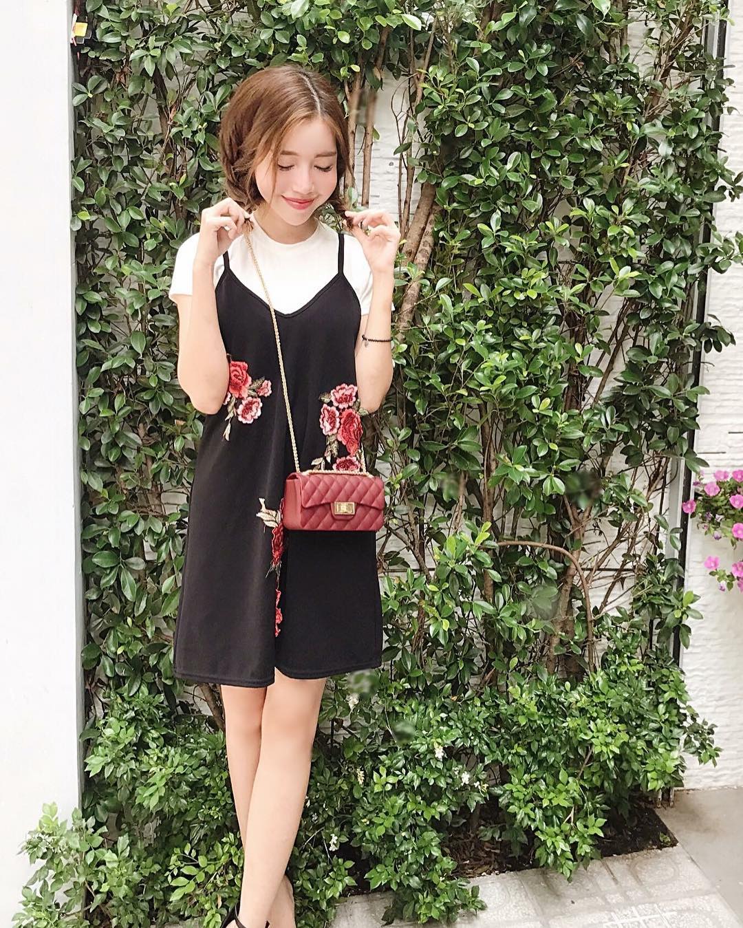 Với chiếc đầm yếm đơn giản, Elly Trần mang đến vẻ đẹp đáng yêu và kín đáo.