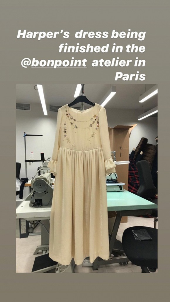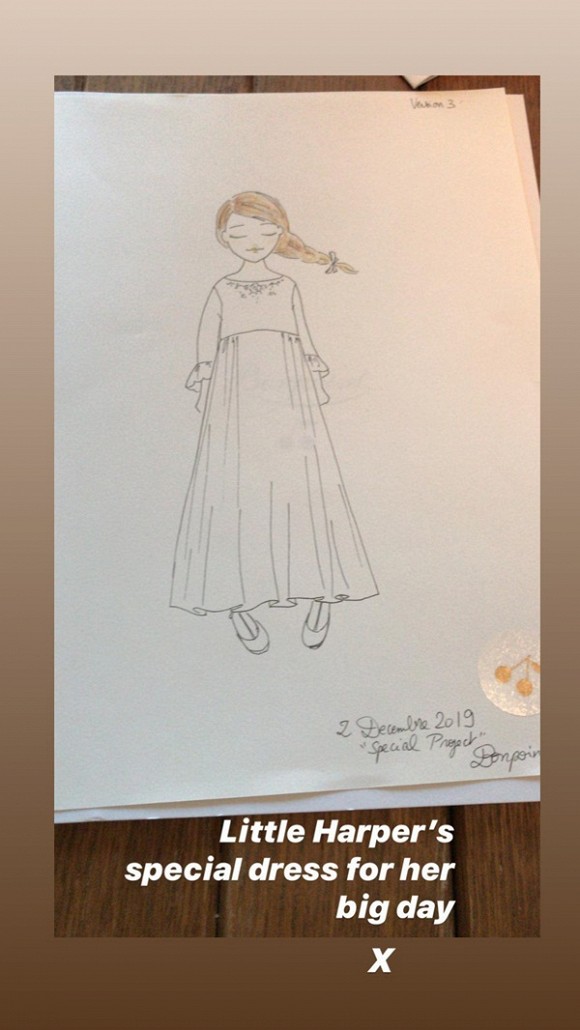 Được biết trang phục của Harper Beckham được hãng lên bản sketch vô cùng tỉ mỉ để mẹ con nhà Victoria có thể lựa chọn thiết kế phù hợp và chất liệu ưng ý nhất để làm nên bộ váy đẹp nhất cho cô con gái út nhà Becks.
