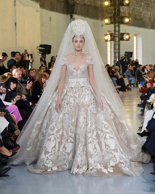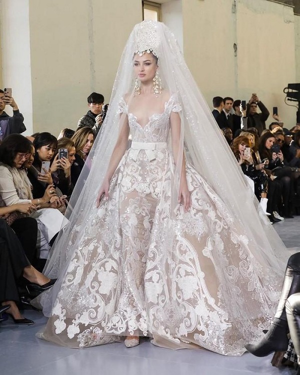 Những chiếc váy cưới được làm thủ công bằng tay, tinh xảo và lộng lẫy của nhà thiết kế người Li-băng Elie Saab là niềm mơ ước của hàng triệu cô dâu trên thế giới. Mỗi năm, Elie Saab ra mắt hai bộ sưu tập Haute Couture vào mùa xuân và mùa thu và thường kiểu “váy cưới vedette” sẽ được “trình làng” vào cuối show.