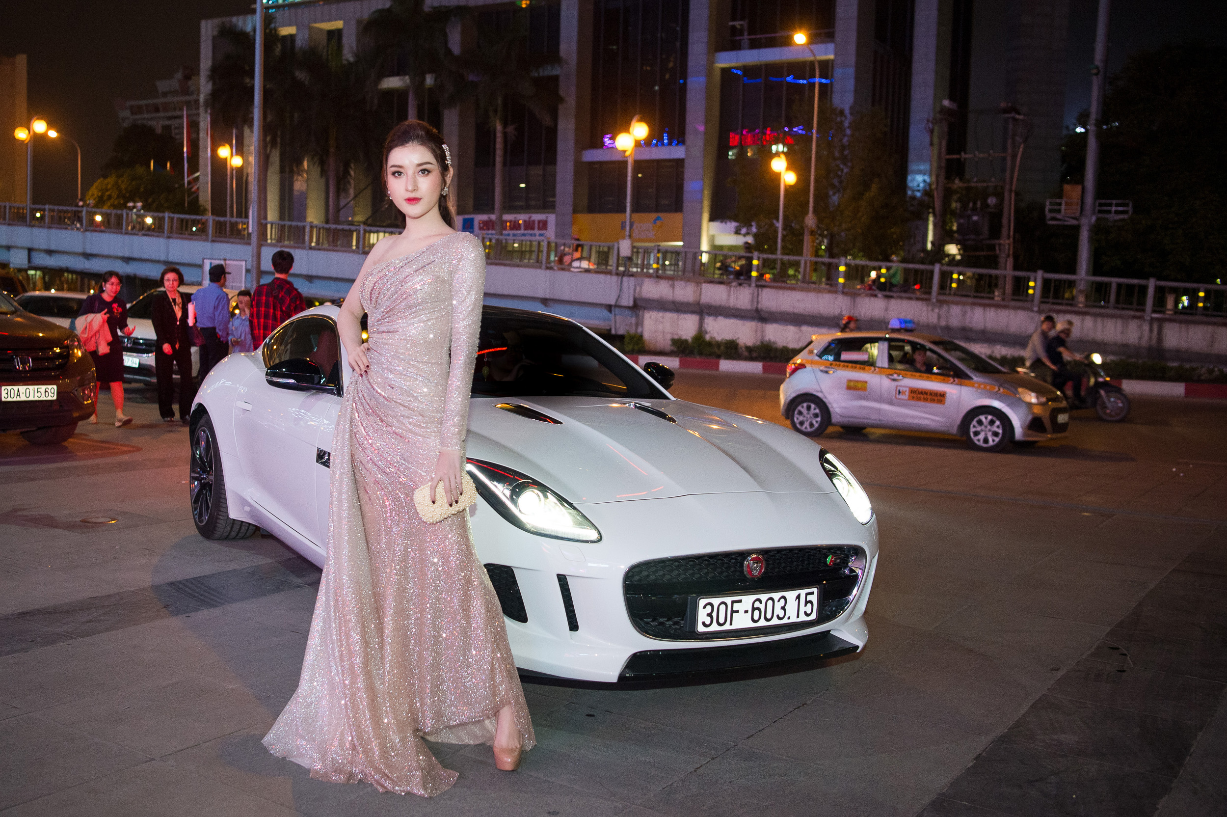Từ sau khi tậu siêu xe mới, Huyền My vẫn thường xuyên tự lái xe đi sự kiện. Tuy nhiên ở sự kiện tối qua do mặc váy dạ hội thướt tha nên Á hậu đã nhờ bố đưa đến địa điểm tổ chức.