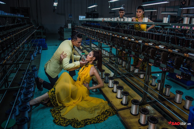 Khung cảnh chụp hình thời trang trong công ty cổ phần lụa Bảo Lộc tưởng chừng như cứng nhắc nhưng khi xuất hiện qua ống kính của Siêu mẫu Việt Nam 2018, các thước hình với lụa đã thật sự tỏa sáng và đẹp như một bức tranh nghệ thuật không lẫn vào đâu được.