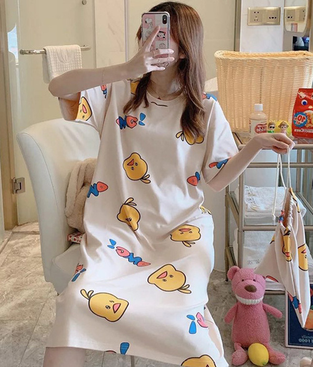 Thế nhưng khi ở nhà, cô nàng lại trái ngược hẳn, Ngọc Trinh thường chọn cho mình những bộ cánh đơn giản, thoải mái… Nếu dân tình từng biết đến bộ sưu tập piyama đủ màu sắc, hoạ tiết thì nay Trinh vừa cho hay, mình cũng là fan của những bộ váy suông, phom dáng rộng rãi, thoải mái và có giá chưa đến… 50 nghìn đồng.