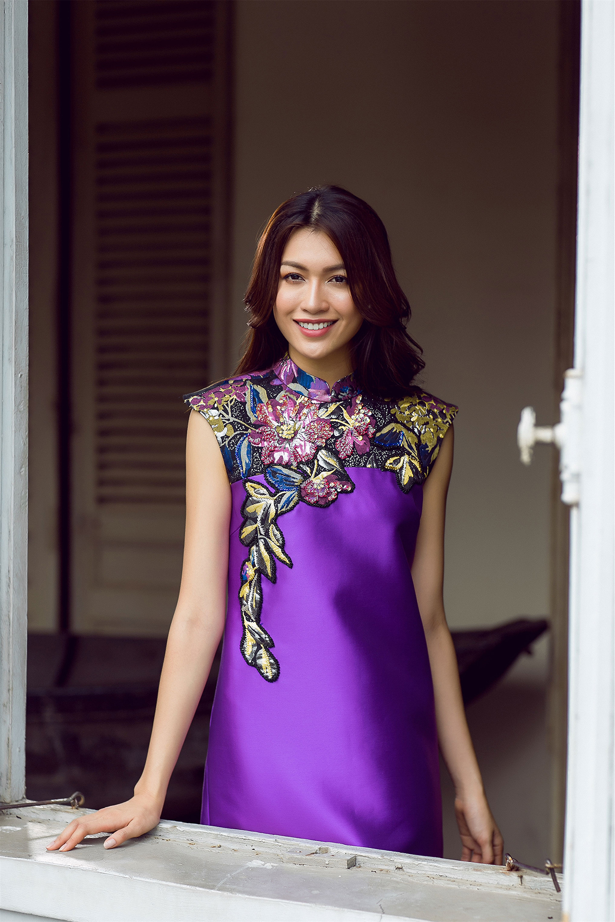 Nhận lời nhà thiết kế Thuỷ Nguyễn, Lệ Hằng diện những bộ cánh thanh lịch, mang tinh thần truyền thống thể hiện vẻ đẹp kín đáo, đoan trang của người phụ nữ Việt.