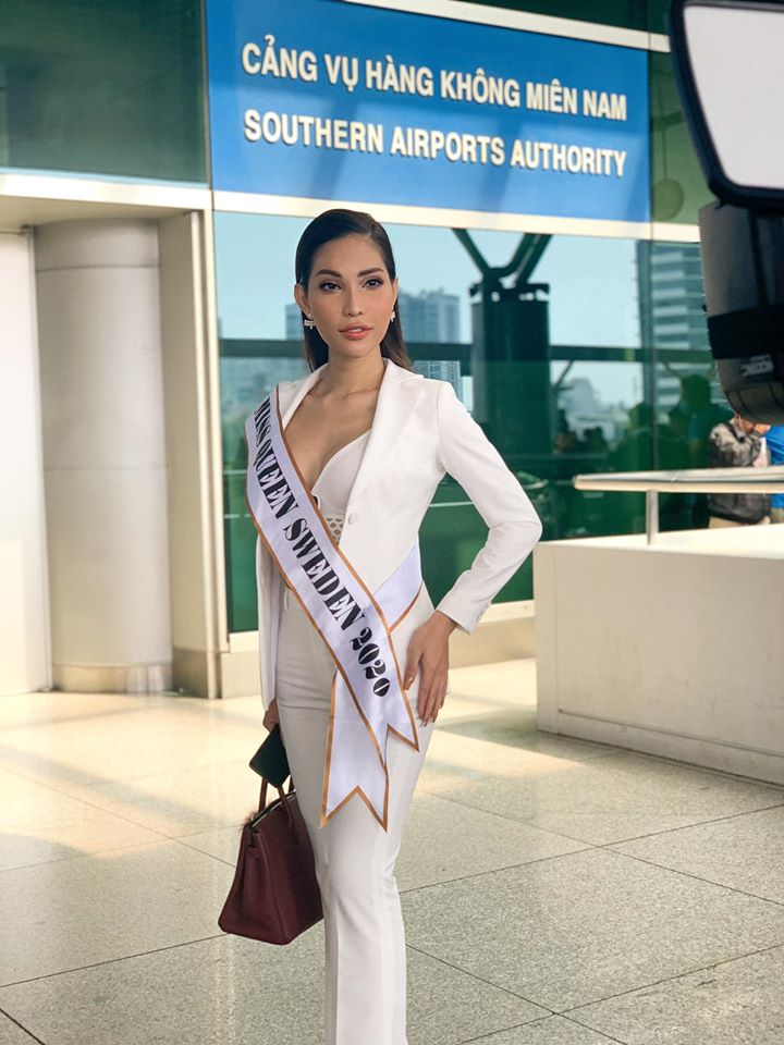 Đúng 10 giờ sáng ngày 24/2, Vicky Trần đại diện Thụy Điển đã chính thức lên đường sang Thái Lan dự thi Hoa hậu chuyển giới Quốc tế 2020. Có mặt trong ngày xuất binh, Vicky Trần ghi điểm với diện mạo cá tính, gợi cảm. Người đẹp chọn suit trắng ôm sát khoe khéo vòng một nóng bỏng.