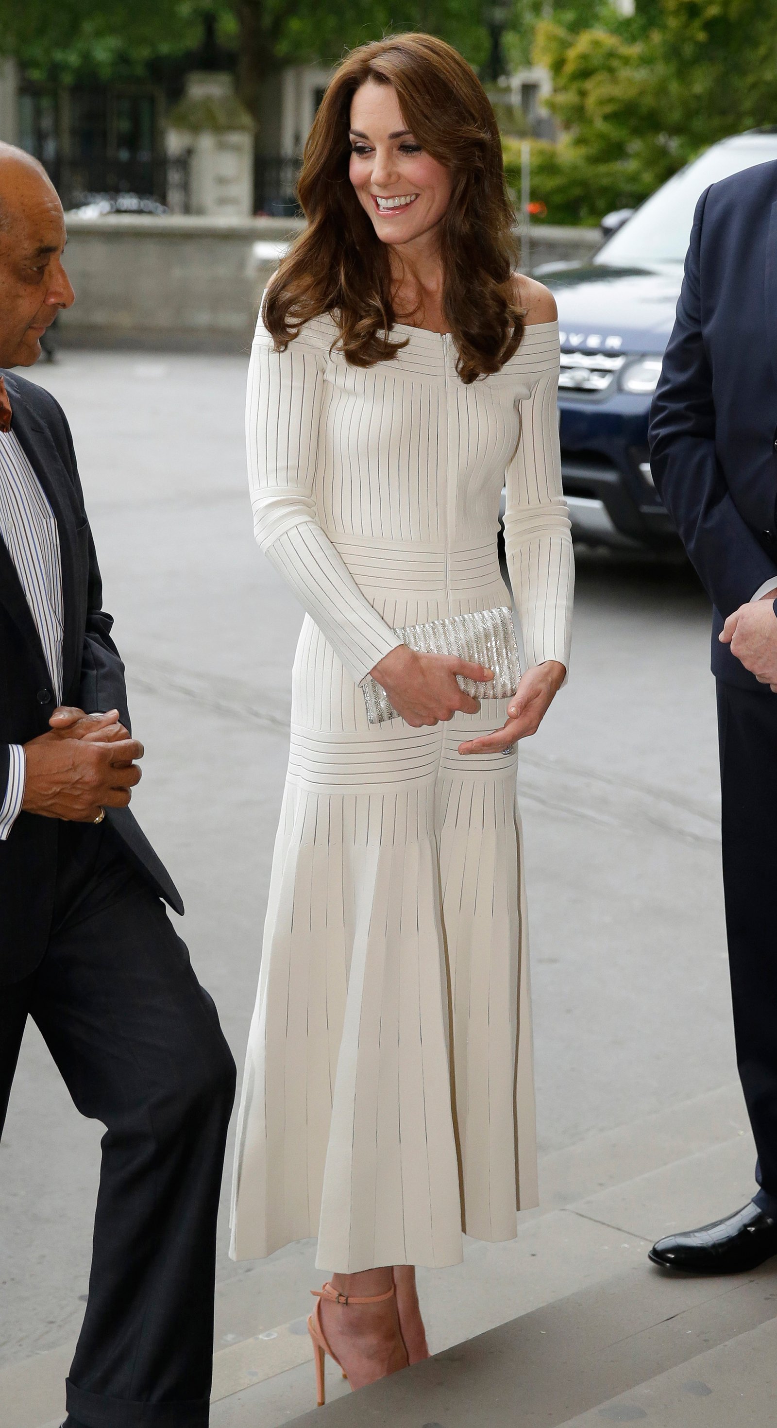 Chiếc đầm liền hở vai của Kate đã trở thành trang phục được yêu thích trong năm nay. Gam màu trắng tinh khôi, sang trọng, thiết kế đơn giản ôm trọn lấy vóc dáng mảnh mai cùng những đường nếp gấp tinh tế vừa đủ đã khiến chiếc đầm hở vai đắt giá của công nương Kate trở thanh hot trend.