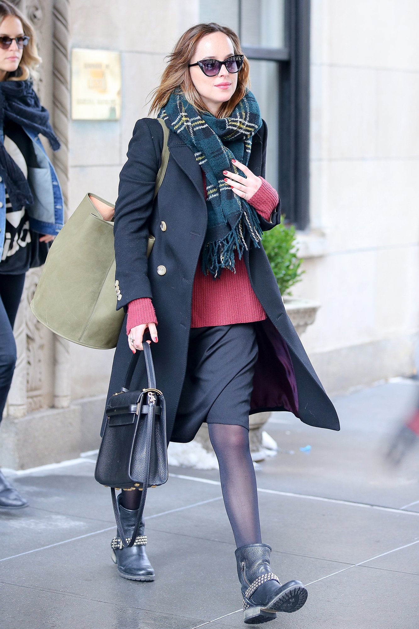 Khoảnh khắc người đẹp “50 sắc thái” xuất hiện với “2 túi xách trong một phong cách” đã khiến cô nàng ghi điểm với các phóng viên thời trang. Dakota vừa sang chảnh trong chiếc túi xách đen My Rockstud của thương hiệu Valentino vừa giản dị, đời thường với chiếc túi xách bao bố đã tạo cảm hứng hay ho và có chút lạ lẫm.