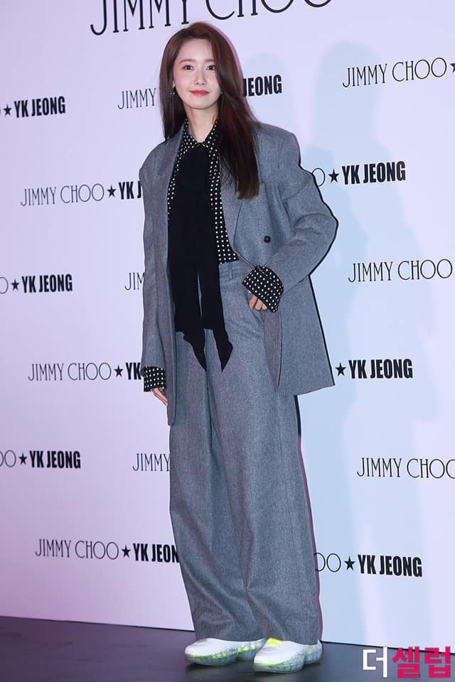 “Nữ thần Yoona” xứ Hàn “cool ngầu” khi xuất hiện tại sự kiện thời trang trong thiết kế suit màu xám ghi bên trong là áo sơ mi chấm bi trắng cùng điểm nhấn nơ đen thắt trước ngực