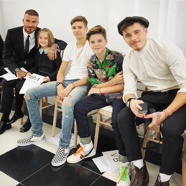 Anh chồng cầu thủ David Beckham cùng đàn con đến show thời trang ủng hộ người mẹ Victoria