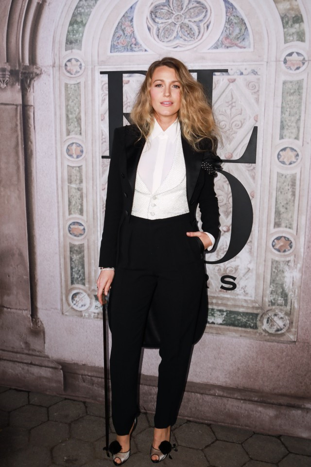 Biểu tượng thời trang hàng đầu Blake Lively vinh dự là một trong 500 vị khách mời của buổi tiệc kỷ niệm 50 năm thành lập thương hiệu thời trang Ralph Lauren thu hút giới truyền thông trong phong cách phối suit đen layer sơ mi trắng và áo gi-lê cách điệu bên trong, phụ kiện kèm theo là một chiếc gậy chứ không phải là túi xách.