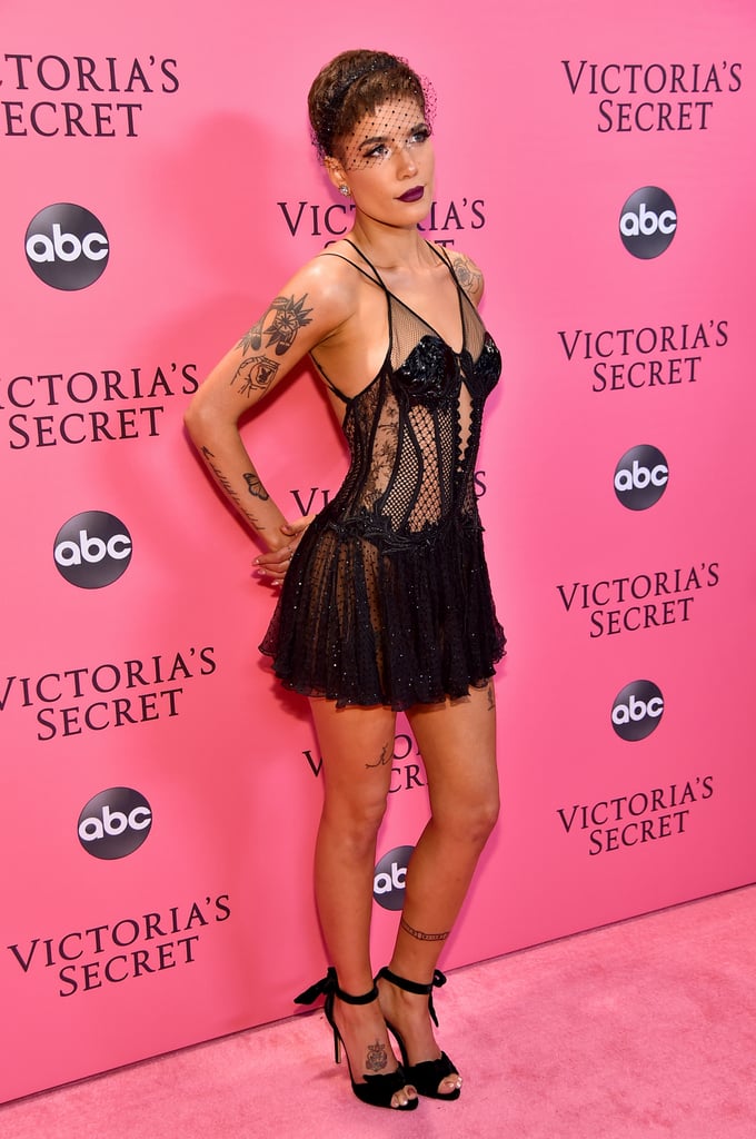 Halsey quyến rũ như dàn thiên thần VS với bộ váy đen vừa ngắn vừa xuyên thấu cùng với tông makeup thần bí