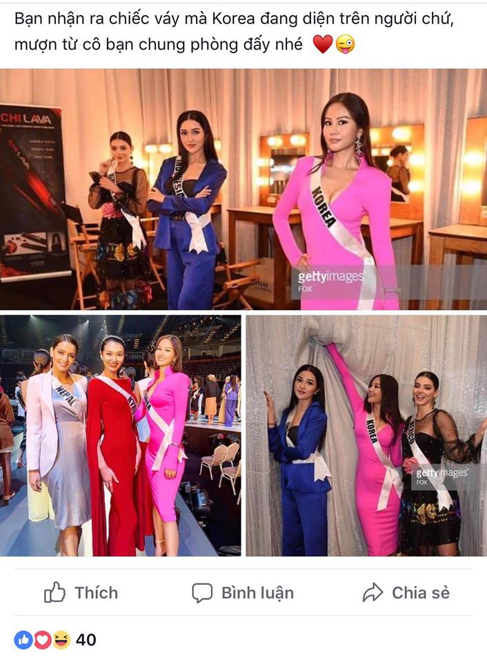 Duy chỉ khác ở chỗ, váy của Hoa hậu Hàn Quốc chỉ dài chấm gối. Song cũng có nhiều luồng suy đoán rằng chiếc váy đã được cắt ngắn đi và H'hen Niê đã cho bạn cùng phòng mượn.