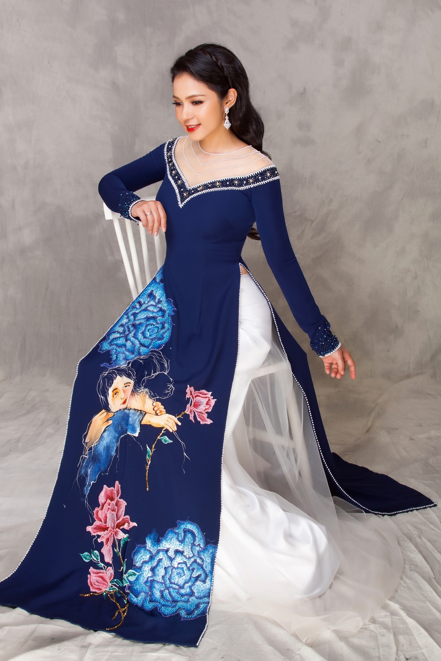 Trong những trang phục đặc biệt này, NTK sử dụng nhiều chất liệu khác nhau như voan, vải ren và áp dụng kỹ thuật đính kết, in ấn nhằm tạo nên họa tiết trang trí.
