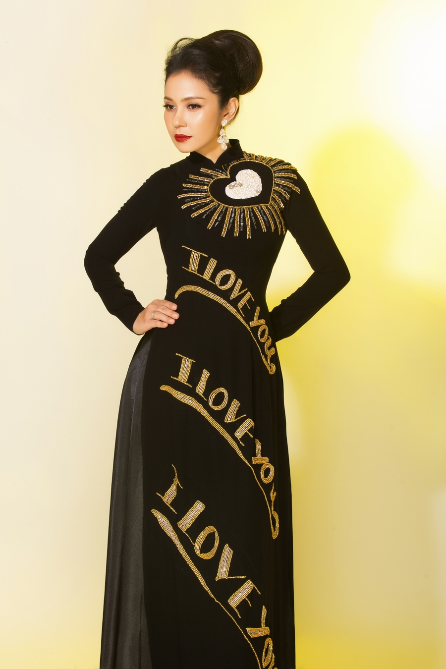 Những họa tiết, dòng chữ “I love you” đính kết nhằm nói đến tình yêu của NTK và người mặc đến với áo dài - quốc hồn dân tộc.